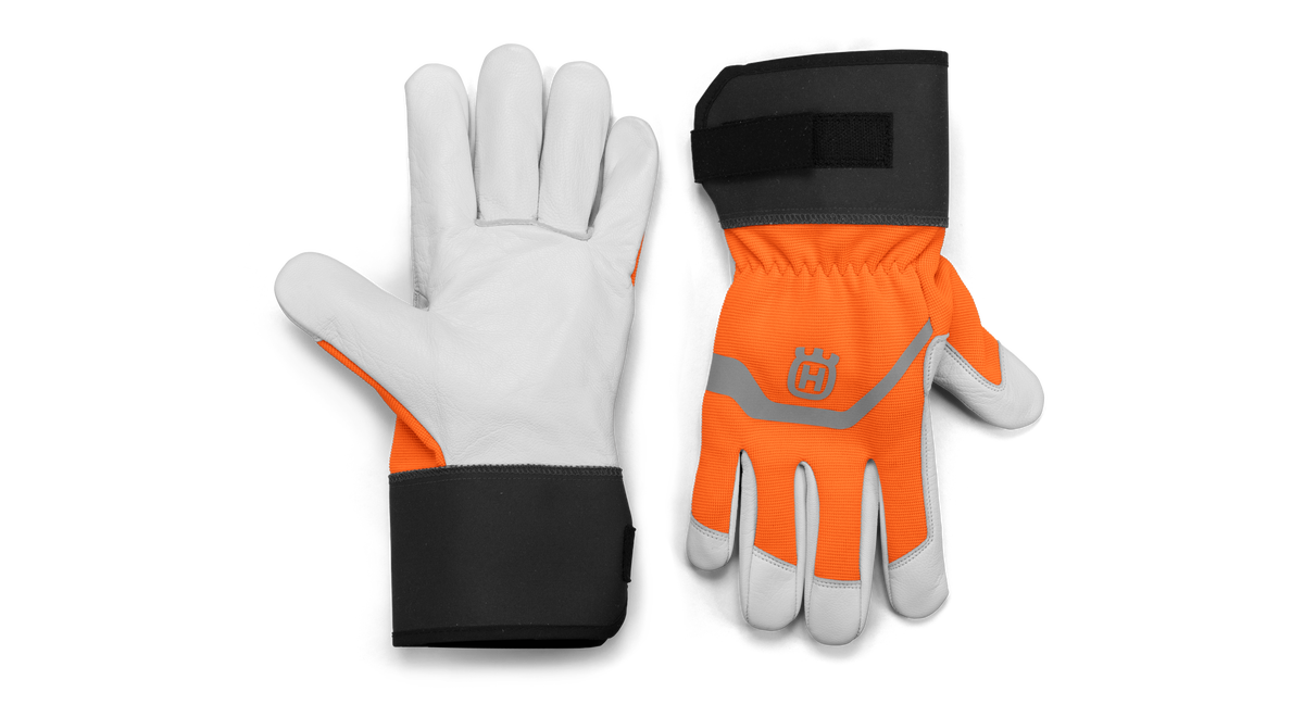 Skyddshandskar avsedda för trädgårds- och skogsarbete. Handflatan består av ett slitstarkt, naturligt vattentåligt getskinn och ovansidan av spandextyg för överlägsen komfort. Den gummerade mudden är laminerad med twill-tyg och har kardborrestängning ger en åtsittande passform. Uppfyller villkoren enligt EN 388: 2016.