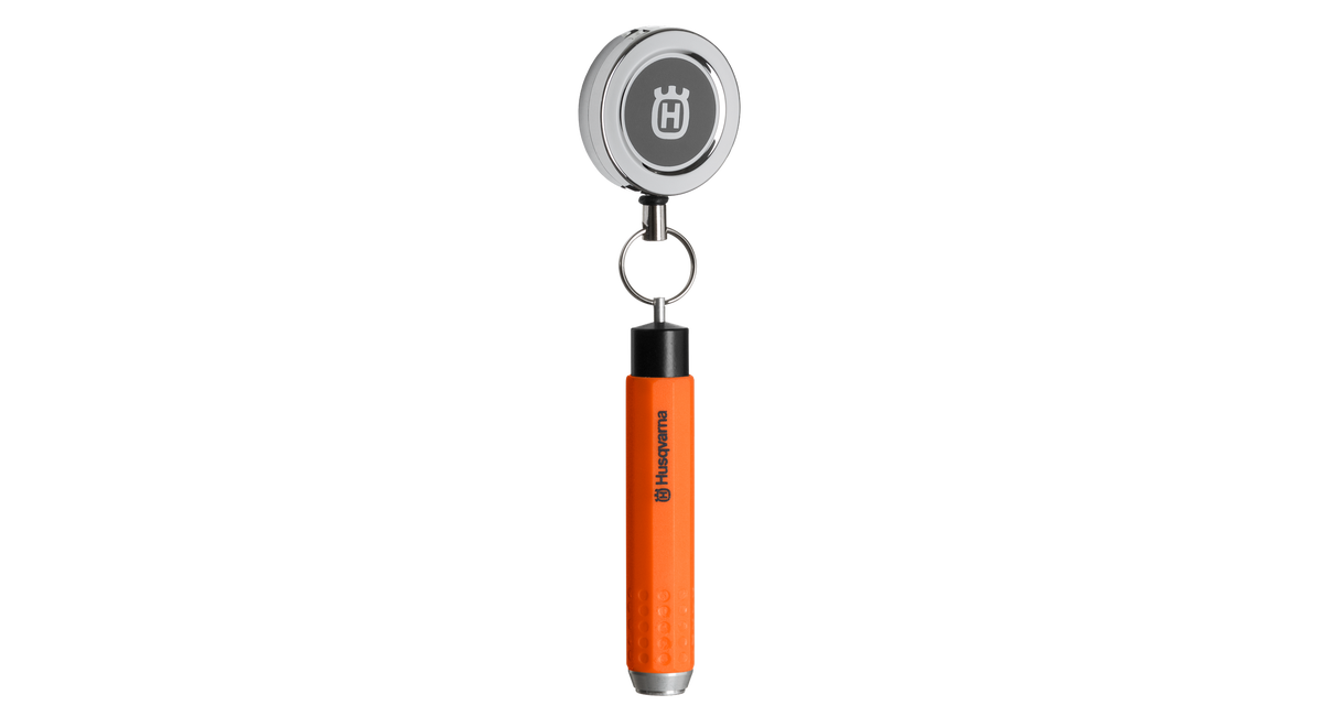 Hållare med fjäderbelastad metallrulle för kritor på 12mm. Robust design med en metallrulle som kan fästas på verktygsbältet eller selen.